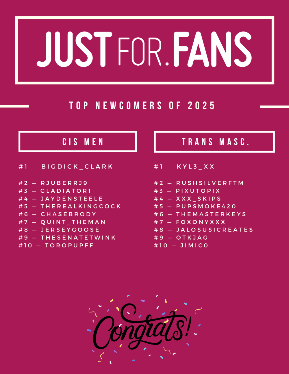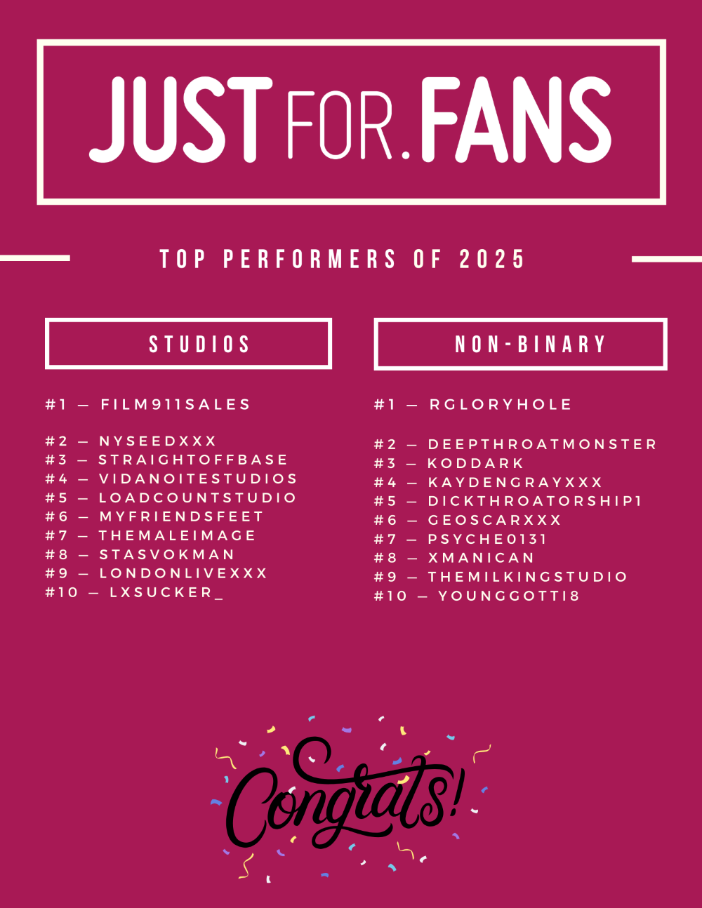JustFor.fans Spotlights Site’s Top Performers, Newcomers of 2025
