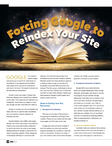 indexing your site. recognizing the limitations of Google’s web services to troubleshoot indexing problems.